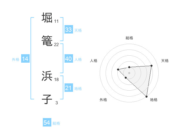 堀篭 浜子さんの総格は54画の1点!