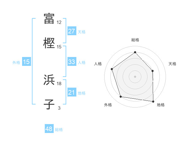 富樫 浜子さんを姓名の画数から五運を鑑定