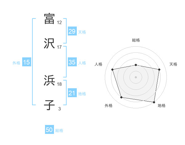 富沢 浜子さんを姓名の画数から五運を鑑定