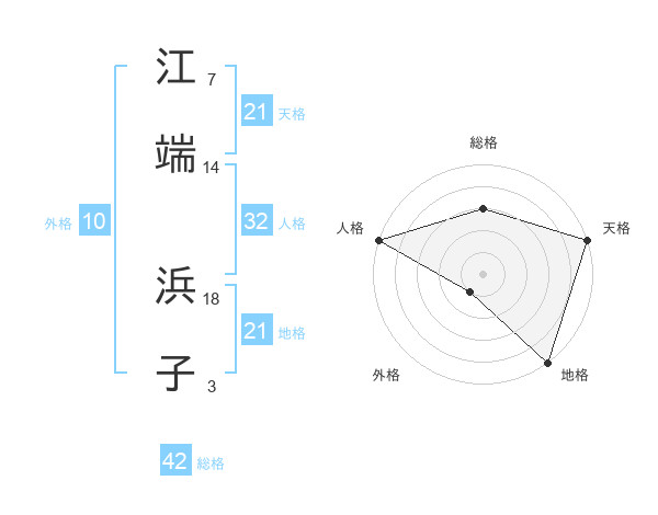 江端 浜子さんの天格は21画の5点!