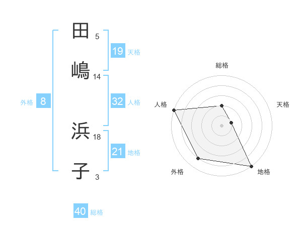 田嶋 浜子さんの外格は8画の4点!