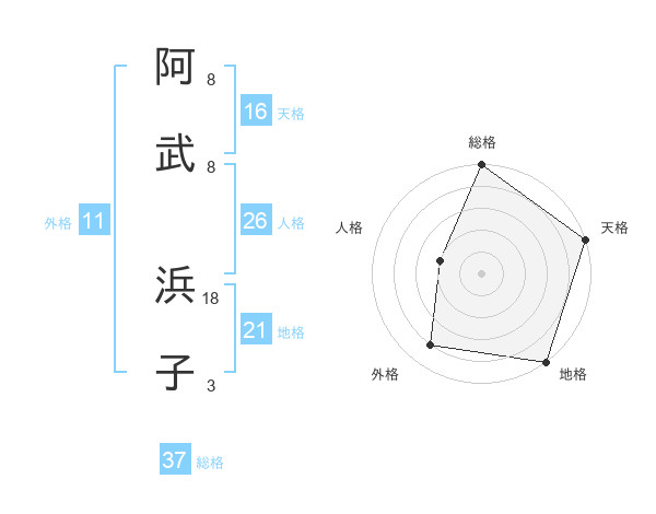 阿武 浜子さんを姓名の画数から五運を鑑定