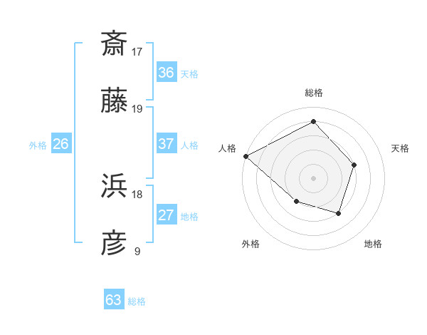 斎藤 浜彦さんの総格は63画の4点