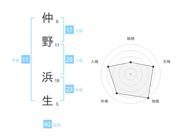 仲野 浜生さんを姓名の画数から五運を鑑定