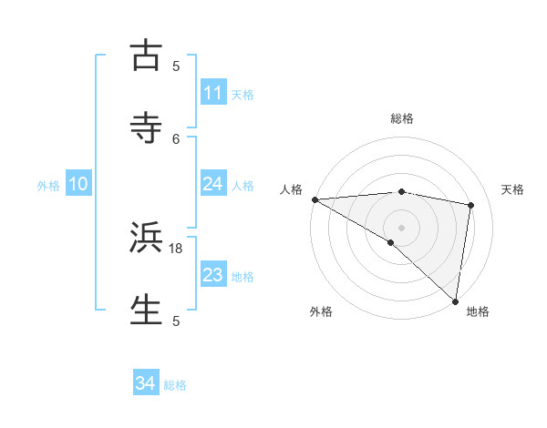 古寺 浜生さんの総格は34画の2点