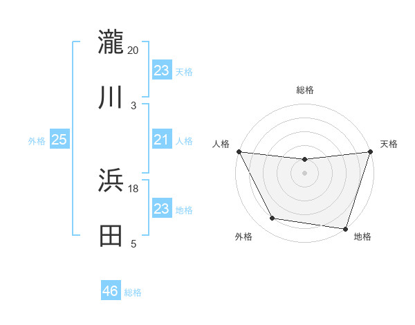 瀧川 浜田さんを姓名の画数から五運を鑑定