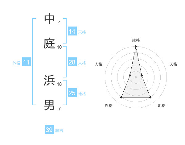 中庭 浜男さんを姓名の画数から五運を鑑定