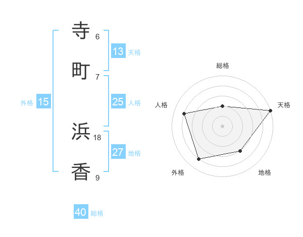 寺町 浜香さんを姓名の画数から五運を鑑定