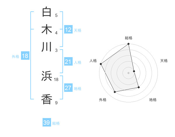 白木川 浜香さんの総格は39画の5点!