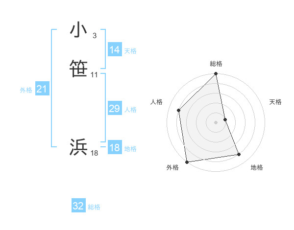小笹 浜さんの総格は32画の5点!