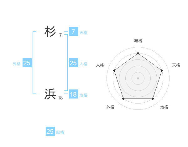 杉 浜さんの総格は25画の4点!
