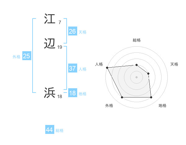 江辺 浜さんの総格は44画の2点!