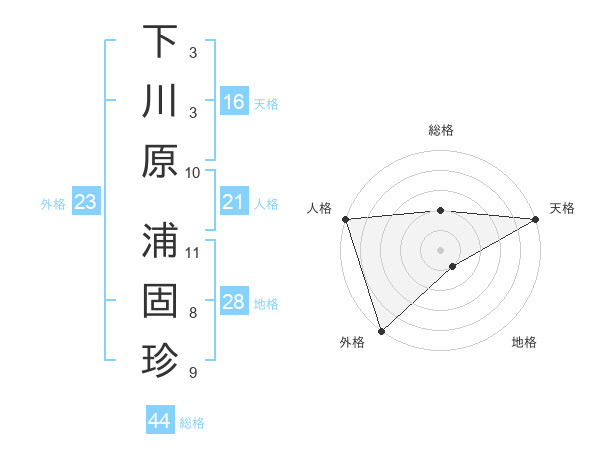 下川原 浦固珍さんを姓名の画数から五運を鑑定