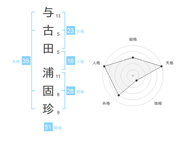 与古田 浦固珍さんの総格は51画の3点!