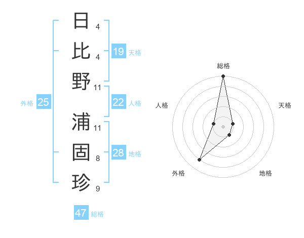 日比野 浦固珍さんを姓名の画数から五運を鑑定