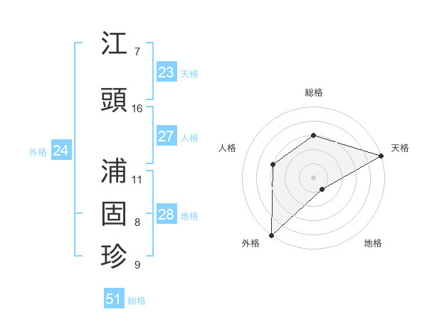 江頭 浦固珍さんの総格は51画の3点!