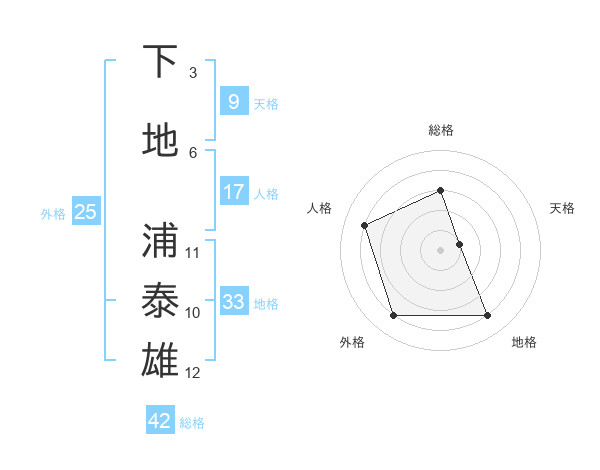 下地 浦泰雄さんを姓名の画数から五運を鑑定