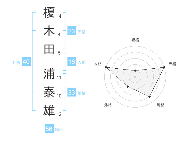 榎木田 浦泰雄さんを姓名の画数から五運を鑑定