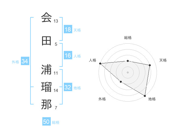 会田 浦瑠那さんを姓名の画数から五運を鑑定