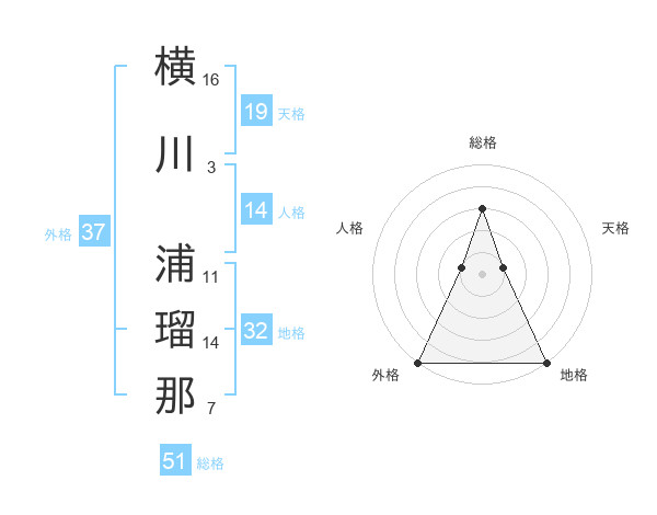 横川 浦瑠那さんの総格は51画の3点!