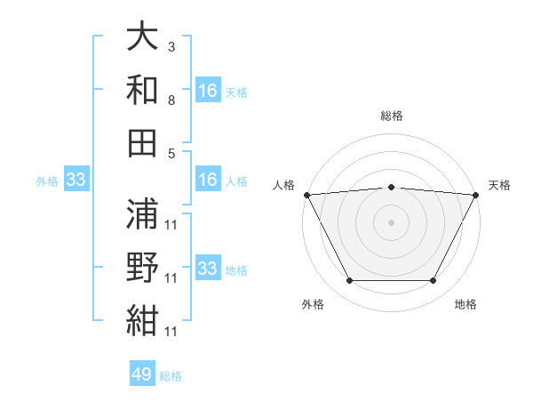 大和田 浦野紺さんの地格は33画の4点!