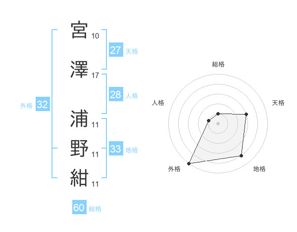 宮澤 浦野紺さんを姓名の画数から五運を鑑定