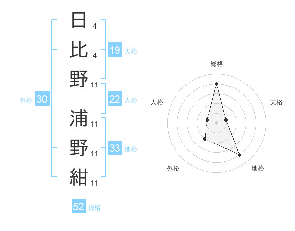 日比野 浦野紺さんを姓名の画数から五運を鑑定