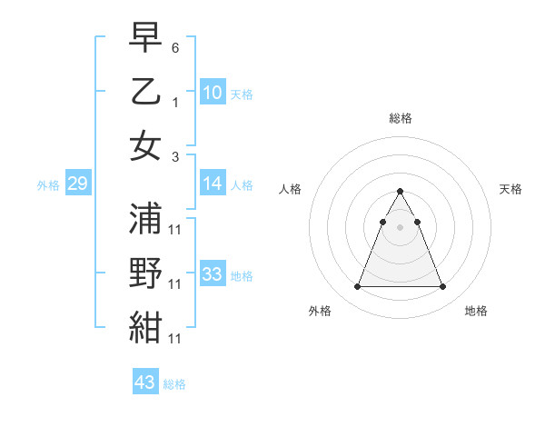 早乙女 浦野紺さんを姓名の画数から五運を鑑定
