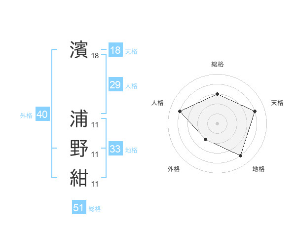 濱 浦野紺さんの総格は51画の3点!