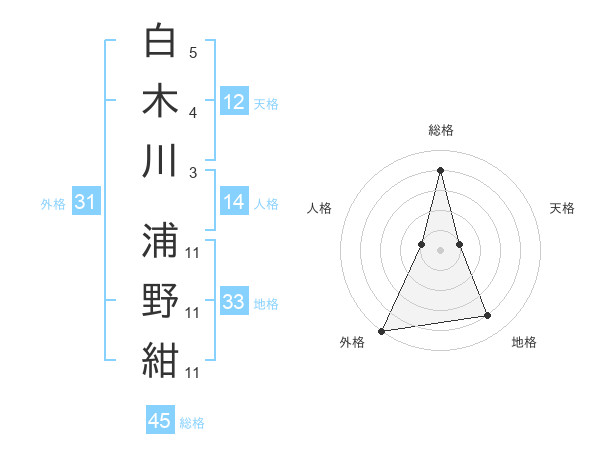 白木川 浦野紺さんの総格は45画の4点