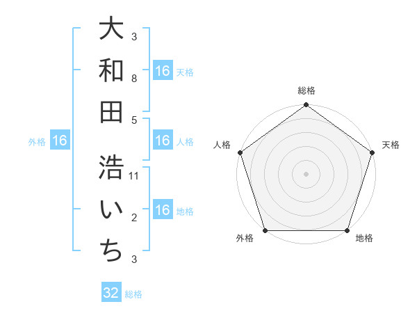 大和田 浩いちさんを姓名の画数から五運を鑑定