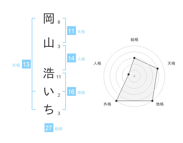 岡山 浩いちさんを姓名の画数から五運を鑑定