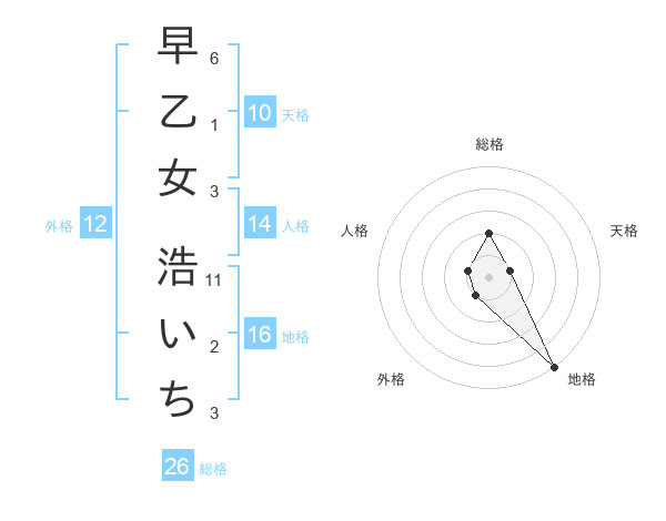 早乙女 浩いちさんを姓名の画数から五運を鑑定