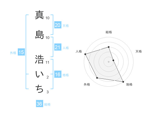 真島 浩いちさんを姓名の画数から五運を鑑定
