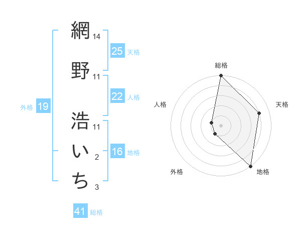 網野 浩いちさんを姓名の画数から五運を鑑定