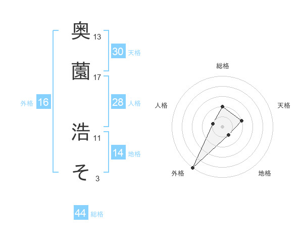 奥薗 浩そさんの総格は44画の2点!