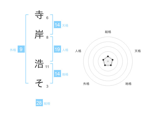 寺岸 浩そさんの総格は28画の1点!