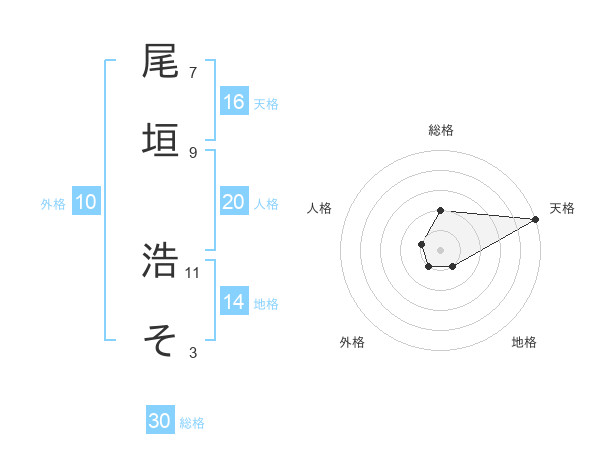 尾垣 浩そさんを姓名の画数から五運を鑑定