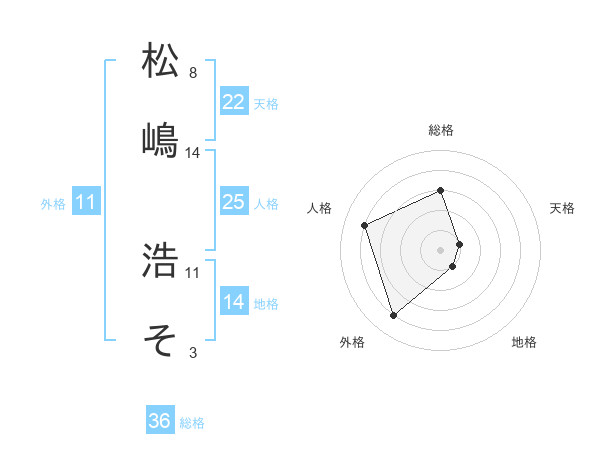 松嶋 浩そさんを姓名の画数から五運を鑑定