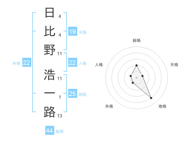 日比野 浩一路さんを姓名の画数から五運を鑑定