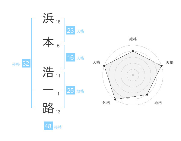 浜本 浩一路さんを姓名の画数から五運を鑑定