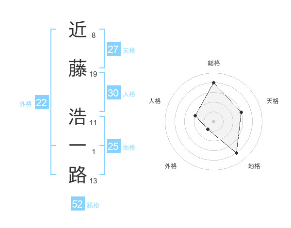 近藤 浩一路さんの総格は52画の4点