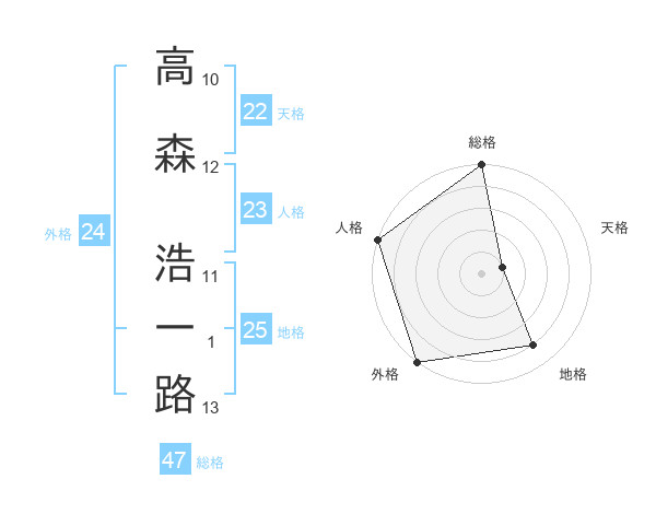 高森 浩一路さんの総格は47画の5点!