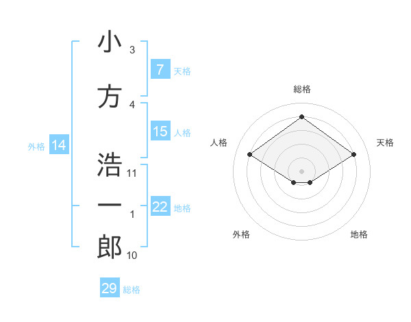 小方 浩一郎さんの総格は29画の4点!