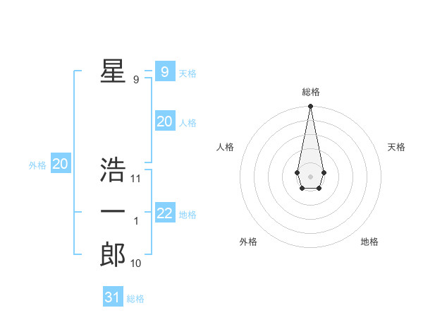 星 浩一郎さんを姓名の画数から五運を鑑定