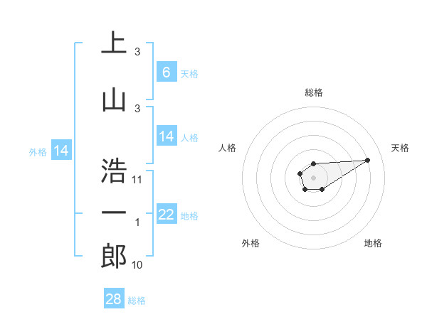 上山 浩一郎さんを姓名の画数から五運を鑑定