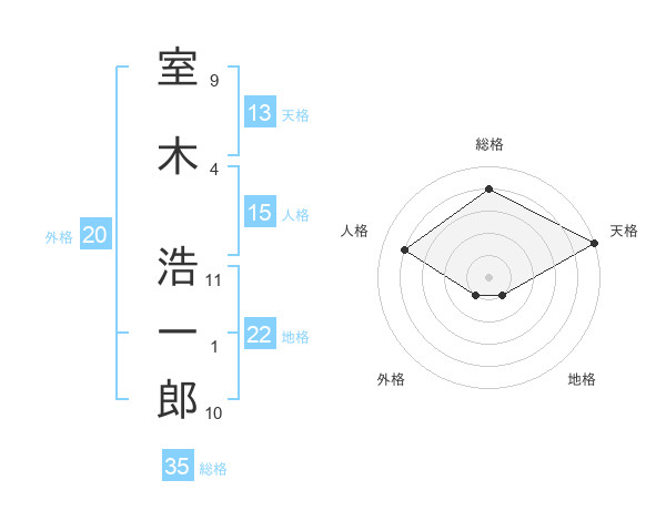室木 浩一郎さんを姓名の画数から五運を鑑定
