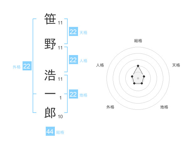 笹野 浩一郎さんの天格は22画の1点!