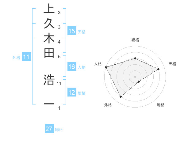 上久木田 浩一さんを姓名の画数から五運を鑑定