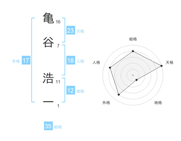 亀谷 浩一さんの総格は35画の4点!